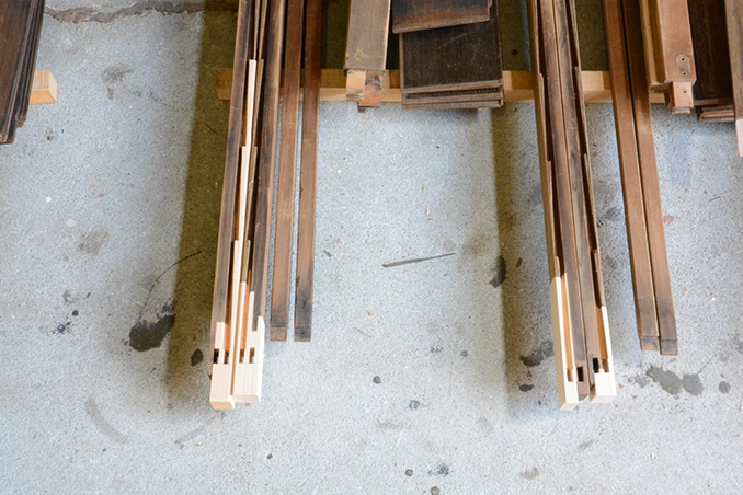 写真(2) 分解した板戸部材の継木修理の様子
